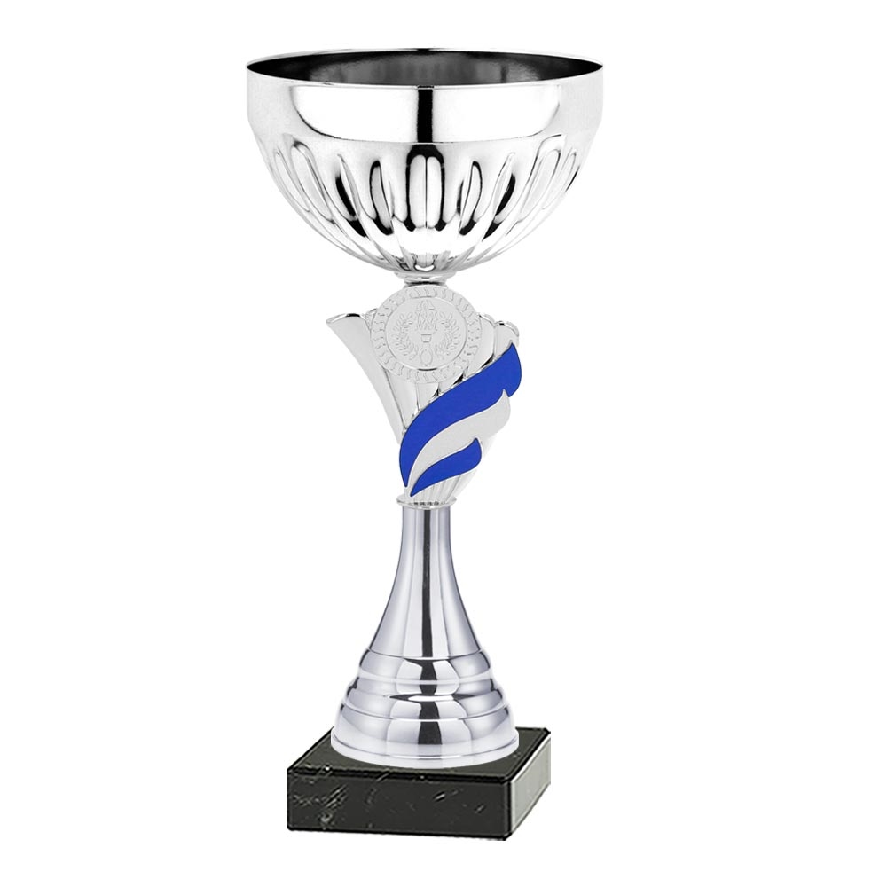 Pokal Bielefeld silver/blå - Snygg och enkel silverpokal modell Bielefeld. Det finns plats för ett av våra många standardmotiv i cirkeln på mittdelen i silver och blå. Monterad på fin marmorsockel. Finns i 3 olika storlekar.