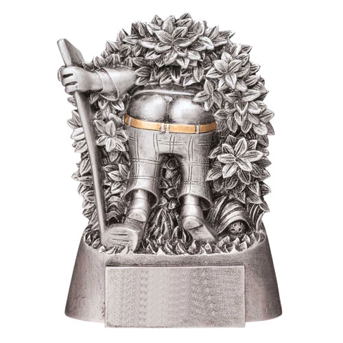 Statyett Lost ball – rolig golfstatyett i antik silver. Fint och personligt golfpris med möjlighet för en graverad skylt på sockeln. Personligt och roligt golfpris med antik silverfinish. Denna snygga statyett är den perfekta belöningen till golfspelaren. Detta sportpris blir en uppskattad och minnesvärd symbol för golfprestationer, oavsett om det är till prisutdelningen på en turnering eller som en gåva. Gör din golfupplevelse ännu mer minnesvärd med statyetten Lost ball.
