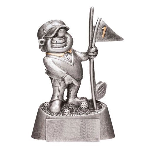 Statyett Nearest the pin – rolig golfstatyett i antik silver. Fint och personligt golfpris med möjlighet för en graverad skylt på sockeln. Personligt och roligt golfpris med antik silverfinish. Denna snygga statyett är den perfekta belöningen till golfspelaren. Detta sportpris blir en uppskattad och minnesvärd symbol för golfprestationer, oavsett om det är till prisutdelningen på en turnering eller som en gåva. Gör din golfupplevelse ännu mer minnesvärd med statyetten Nearest the pin.